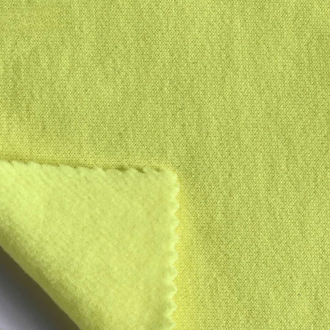ผ้าขนแกะ Hi-Vis Yellow แบบเคลือบสารหน่วงไฟ ให้ความอบอุ่นสูง เหมาะสำหรับเสื้อภายนอก (Outerwear) ในสภาพอากาศหนาวเย็น พร้อมเส้นใยสะท้อนแสงเพิ่มความปลอดภัยในการทำงานกลางคืนหรือในไซต์งานอันตราย