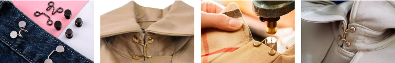 | Glossy Eyelet (ตาไก่มันวาว) | เคลือบเงาเนื้อโลหะเรียบลื่น | เสื้อคลุม, เสื้อเบลเซอร์, เข็มขัด |
