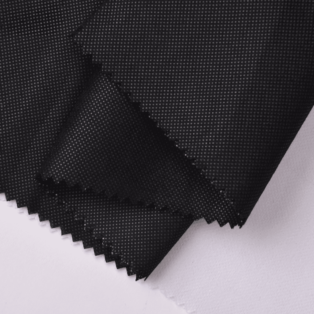 ผลิตจากเส้นใยโพลีเอสเตอร์ 100% หรือโพลีเอสเตอร์ผสมไนล่อน ให้ความแน่นและยืดหยุ่นที่ดี ช่วยให้โครงสร้างเสื้อผ้าด้านนอกอยู่ทรง - ชั้นกาวประเภท PES หรือ PA