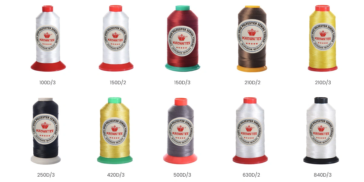 ด้ายเย็บโพลีเอสเตอร์แรงดึงสูง 100% ผลิตจากเส้นใยต่อเนื่อง (Continuous Filament) แข็งแรง ทนทาน เหมาะกับงานเย็บหนัง รองเท้า เบาะ เฟอร์นิเจอร์ และงานอุตสาหกรรมกลางแจ้ง มีหลายขนาด เช่น 100D ถึง 840D รองรับจักรความเร็วสูง สีไม่ซีด ไม่ขาดง่าย