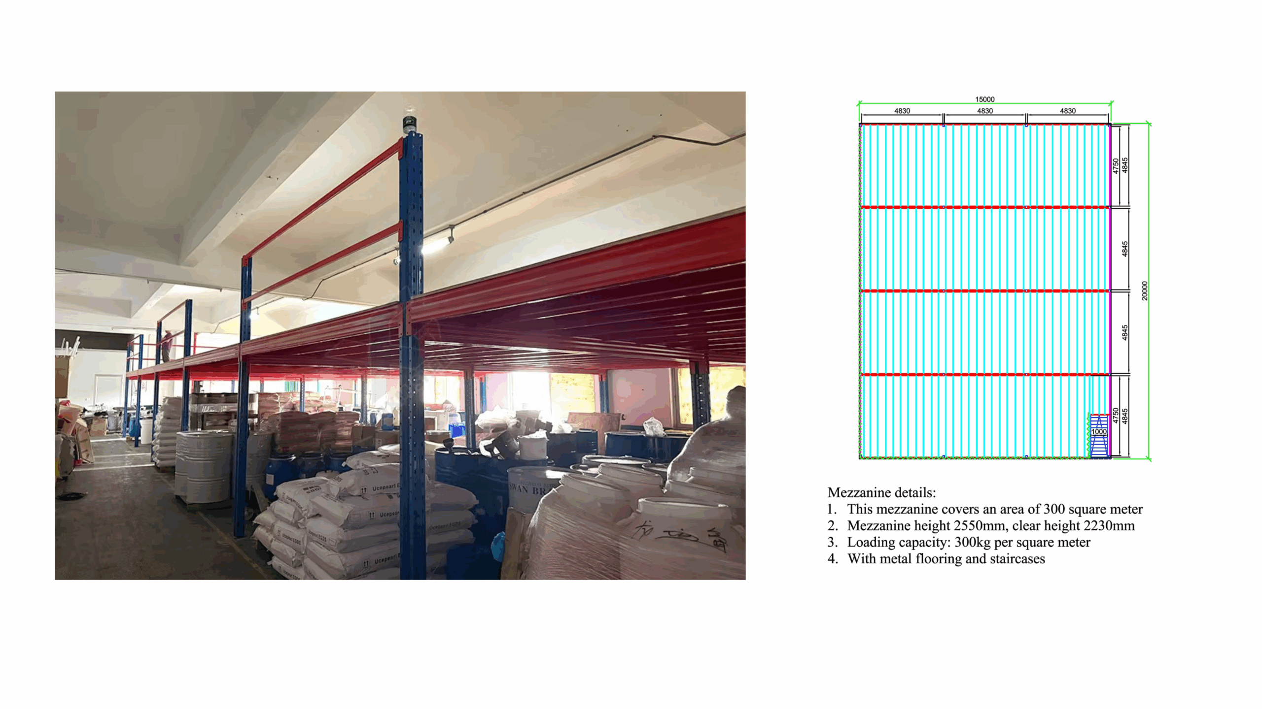 | จำนวนชั้น | รองรับ 2–4 ชั้น (ออกแบบพิเศษตามพื้นที่โกดัง) |
