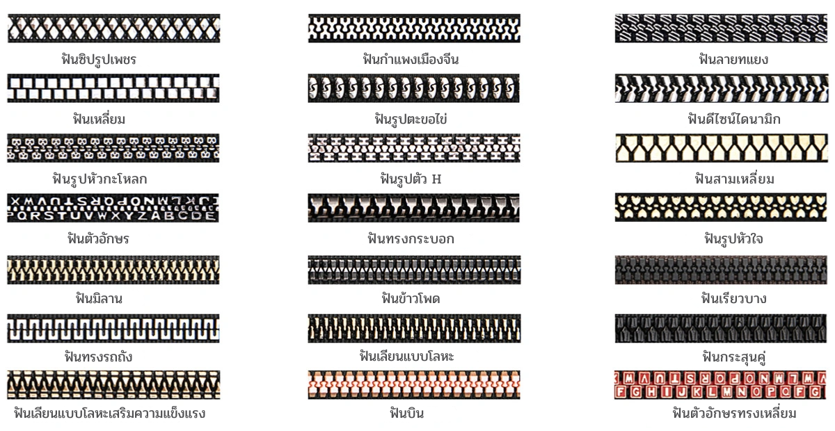 4. Zipper Teeth Shapes Customization – การปรับแต่งรูปแบบฟันซิป
