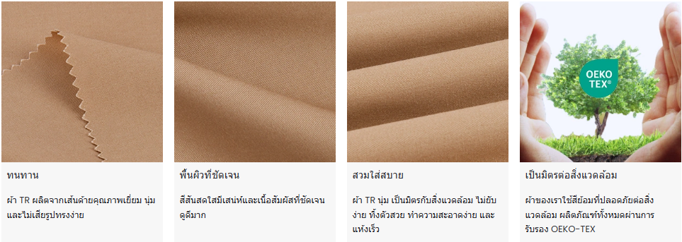 - Comfortable to Wear (สวมใส่สบาย): ระบายอากาศดี ไม่ร้อน ยับยาก และแห้งเร็ว