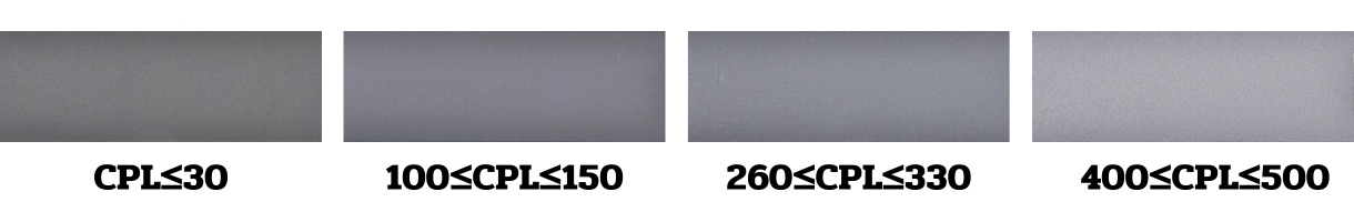 - ค่าการสะท้อนแสงสูงสุด 30–500 CPL