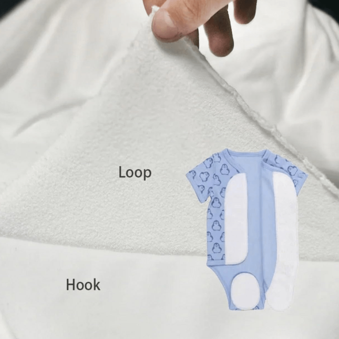 ผ้าห่อตัวต้องการความนุ่มและความปลอดภัยสูง ตีนตุ๊กแกแบบผ้านุ่มติดแน่น แต่ไม่บาดผิว สามารถซักได้หลายครั้งโดยไม่เสียทรง