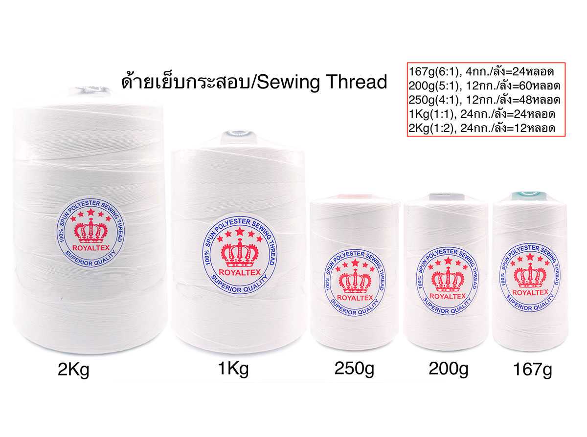 ด้ายเย็บกระสอบ ด้ายสปันเย็บกระสอบ โพลีเอสเตอร์ 100%ใช้สำหรับเย็บปิดปากถุงกระสอบ และวัสดุบรรจุภัณฑ์อื่นๆ ที่ใช้ในอุตสาหกรรมต่างๆ เหมาะสำหรับงานปิดปากกระสอบทุกประเภท เช่น ถุงข้าว ถุงปุ๋ย ถุงน้ำตาล ถุงอาหารสัตว์ ถุงซีเมนต์ และถุงเมล็ดพันธุ์ ผ่านมาตรฐาน Food Grade 435ใช้กับเครื่องเย็บได้ทุกรุ่น ทั้งแบบมือถือและระบบอุตสาหกรรม สามารถสั่งผลิตตามสเปคที่ต้องการ ทั้งสี เบอร์ด้าย น้ำหนัก