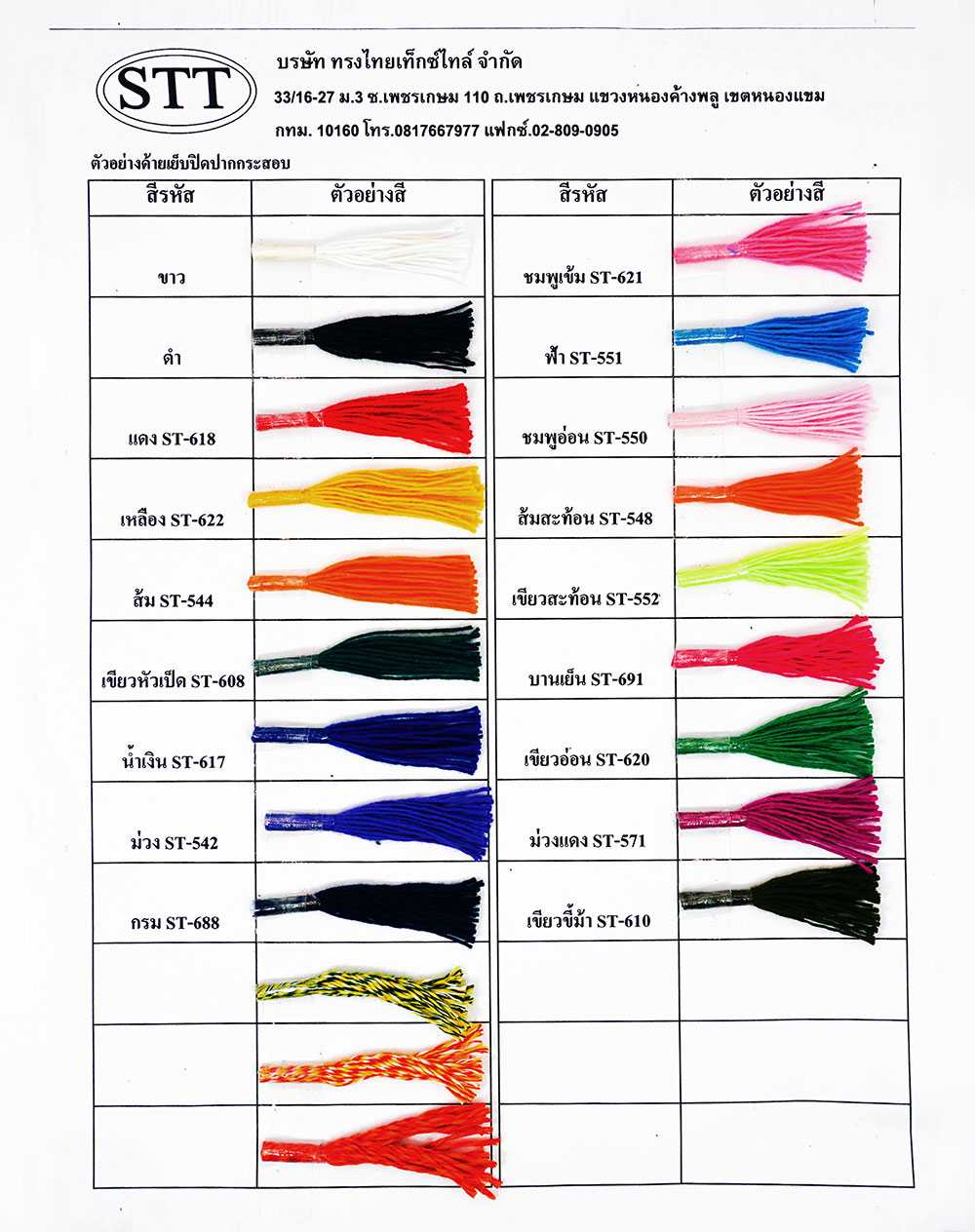 | สี | ขาว ดำ สีย้อมพิเศษ สีสะท้อนแสง ทำได้ 2–3 สีสลับ |