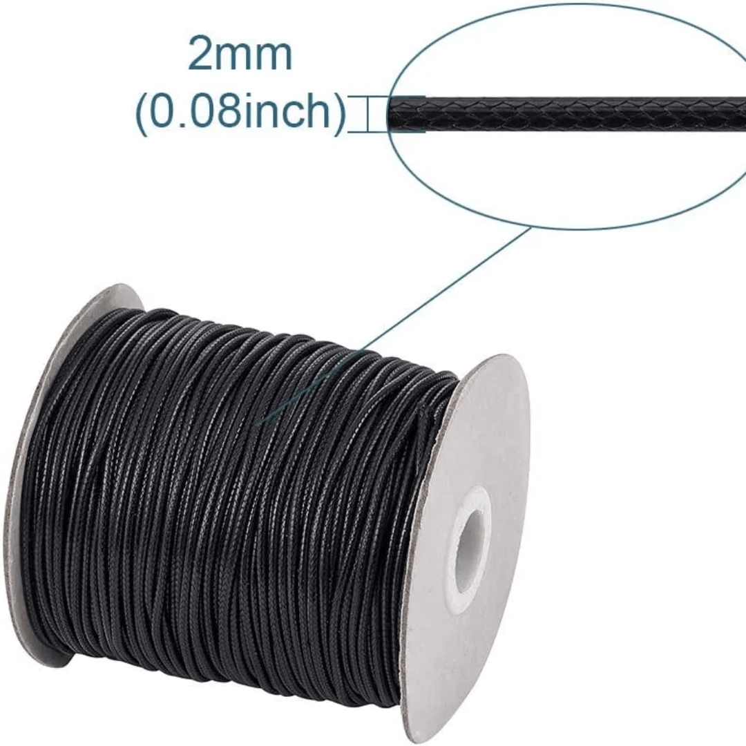 เชือกเทียน 1.5 มม. (Waxed String Cord) ผลิตจาก Polyester เคลือบไขเต็มเส้น ช่วยป้องกันการรุ่ย ถักง่าย ผูกแน่น เส้นนุ่ม โค้งสวย ใช้ทำสร้อย กำไล เย็บหนัง ร้อยลูกปัด และงาน DIY ได้หลากหลาย สีสันสด ไม่ลอก เหมาะกับงานประณีตและงานผลิตจำนวนมาก