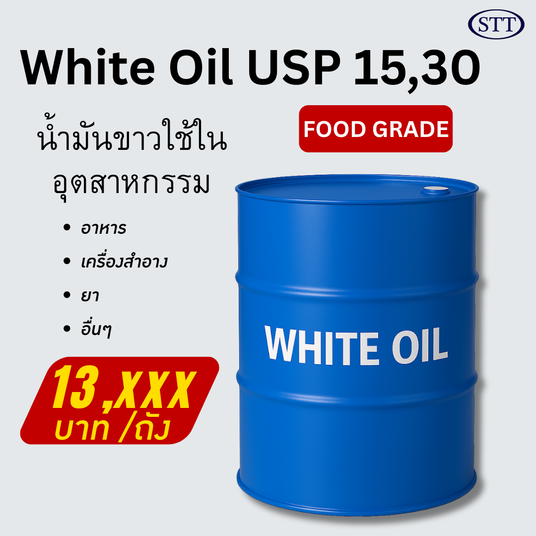 White Oil USP Grade เบอร์15 , 30, 68 หรือเรียกอีกชื่อว่า น้ำมันแก้ว คือน้ำมันแร่ (Mineral oil) ผ่านมาตรฐาน USP คุณภาพระดับสากล ไม่มีสี ไม่มีกลิ่น อ่อนโยน ปลอดภัยต่อผิว เหมาะสำหรับการใช้งานในเวชสำอาง ยา อาหาร เกษตรกรรม และอุตสาหกรรม ต่างๆที่ต้องการความบริสุทธิ์ในทุกขั้นตอน เช่น การผลิตครีม โลชั่น ลิปบาล์ม หรือใช้เป็นน้ำมันหล่อลื่นในเครื่องจักรที่สัมผัสกับอาหารและยา เราจัดจำหน่ายทั้งขนาดเล็กและอุตสาหกรรม พร้อม ใบรับรอง COA, USP และ MSDS ครบถ้วน มั่นใจได้ในคุณภาพและความปลอดภัย พร้อมบริการจัดส่งทั่วประเทศ