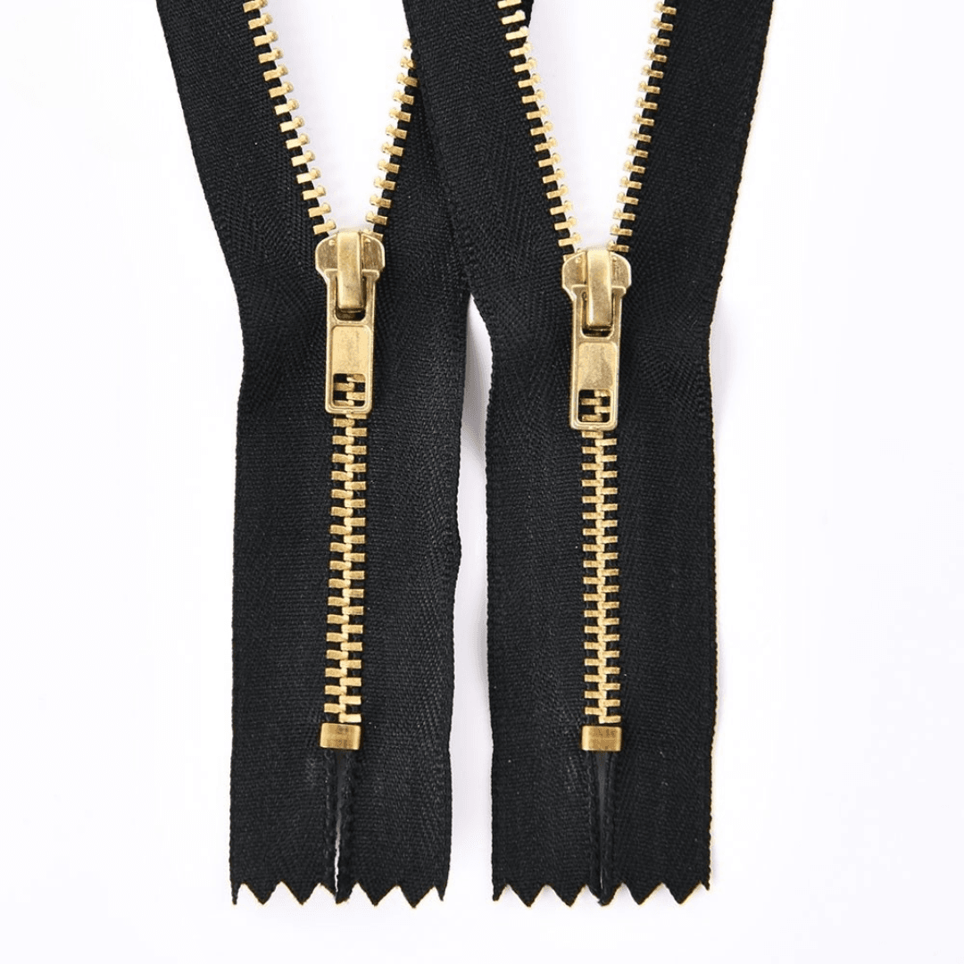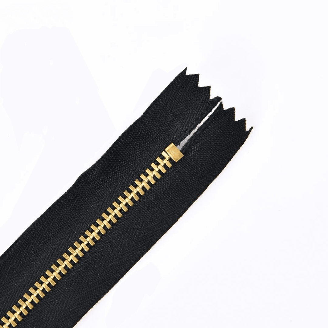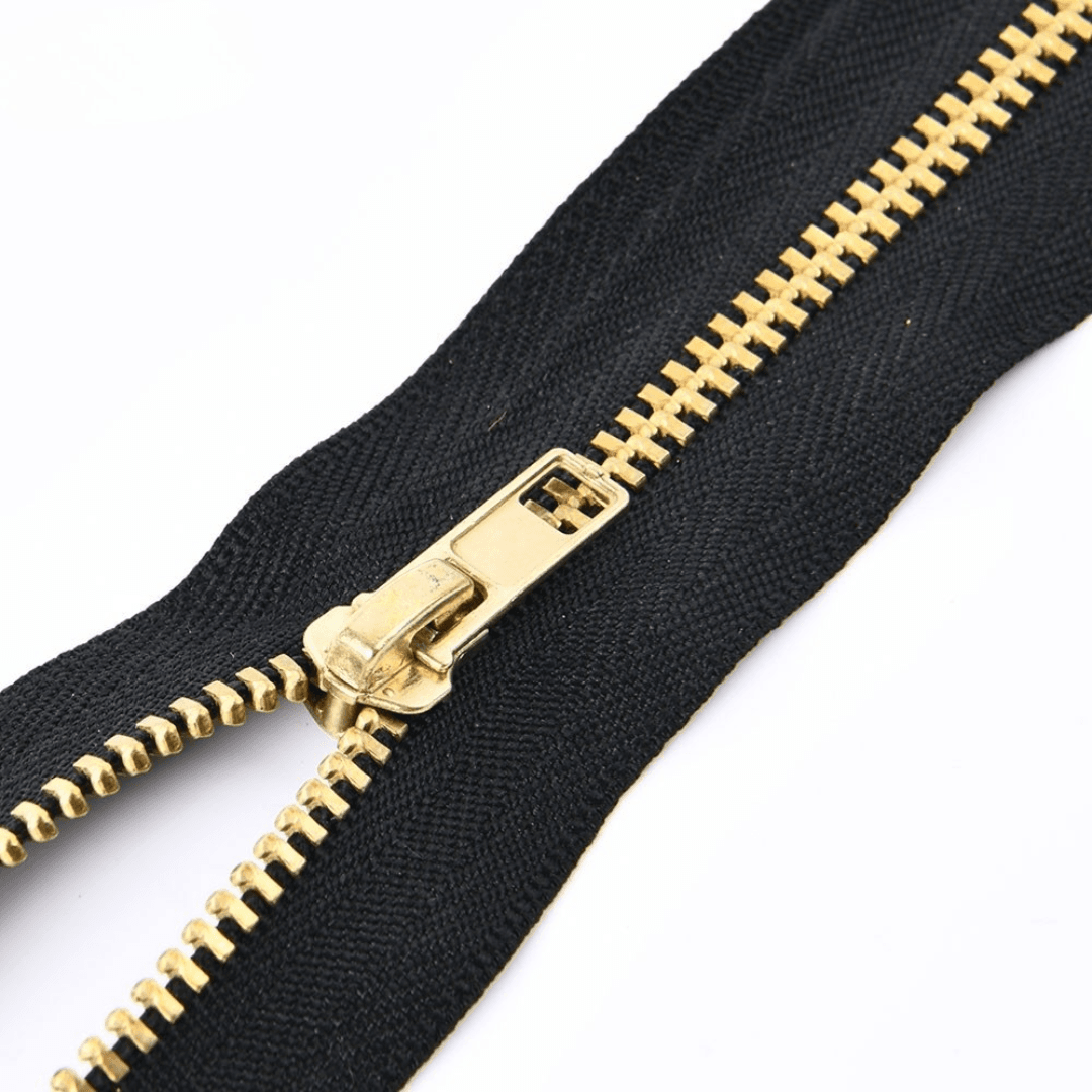 ซิปทองเหลือง (Brass Zipper) เป็นซิปโลหะยอดนิยมในอุตสาหกรรมยีนส์ เพราะมีฟันซิปแข็งแรง ไม่เป็นสนิม และสีทองคลาสสิกให้ความหรูหรา