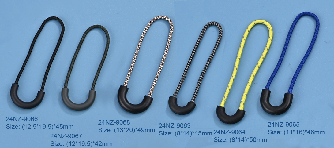 | 1. ตัวดึงซิปรูปตัว U (U-shaped Zipper Pull) | ทำจาก PU Grip + เชือกโพลีเอสเตอร์ (Polyester Cord) ยืดหยุ่นดี ทนแรงดึงสูง ไม่เสียรูป | เสื้อแจ็คเก็ต, กระเป๋าเดินทาง, อุปกรณ์กีฬา, เสื้อกันฝน |